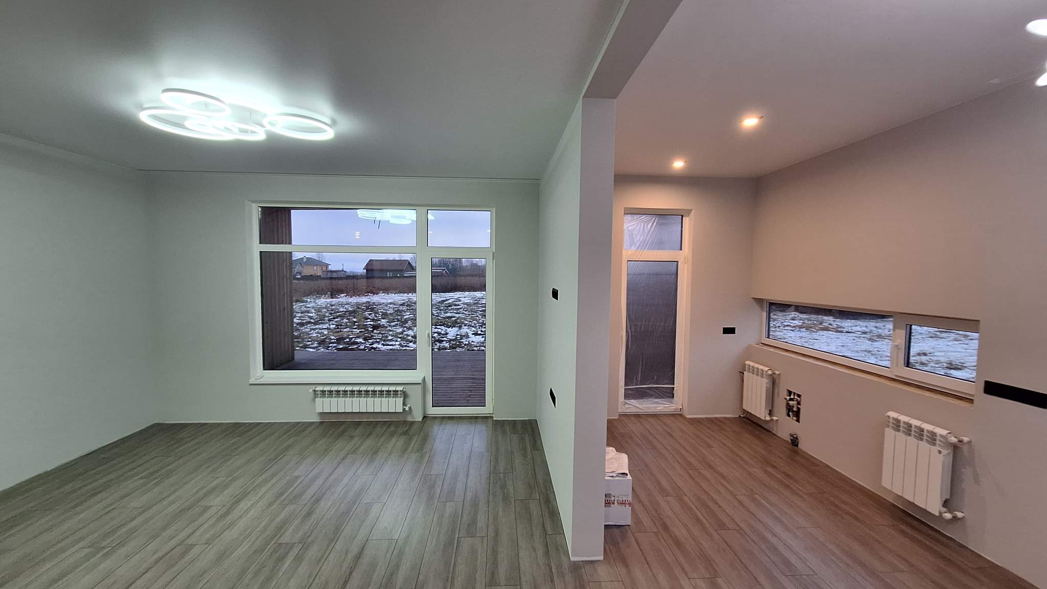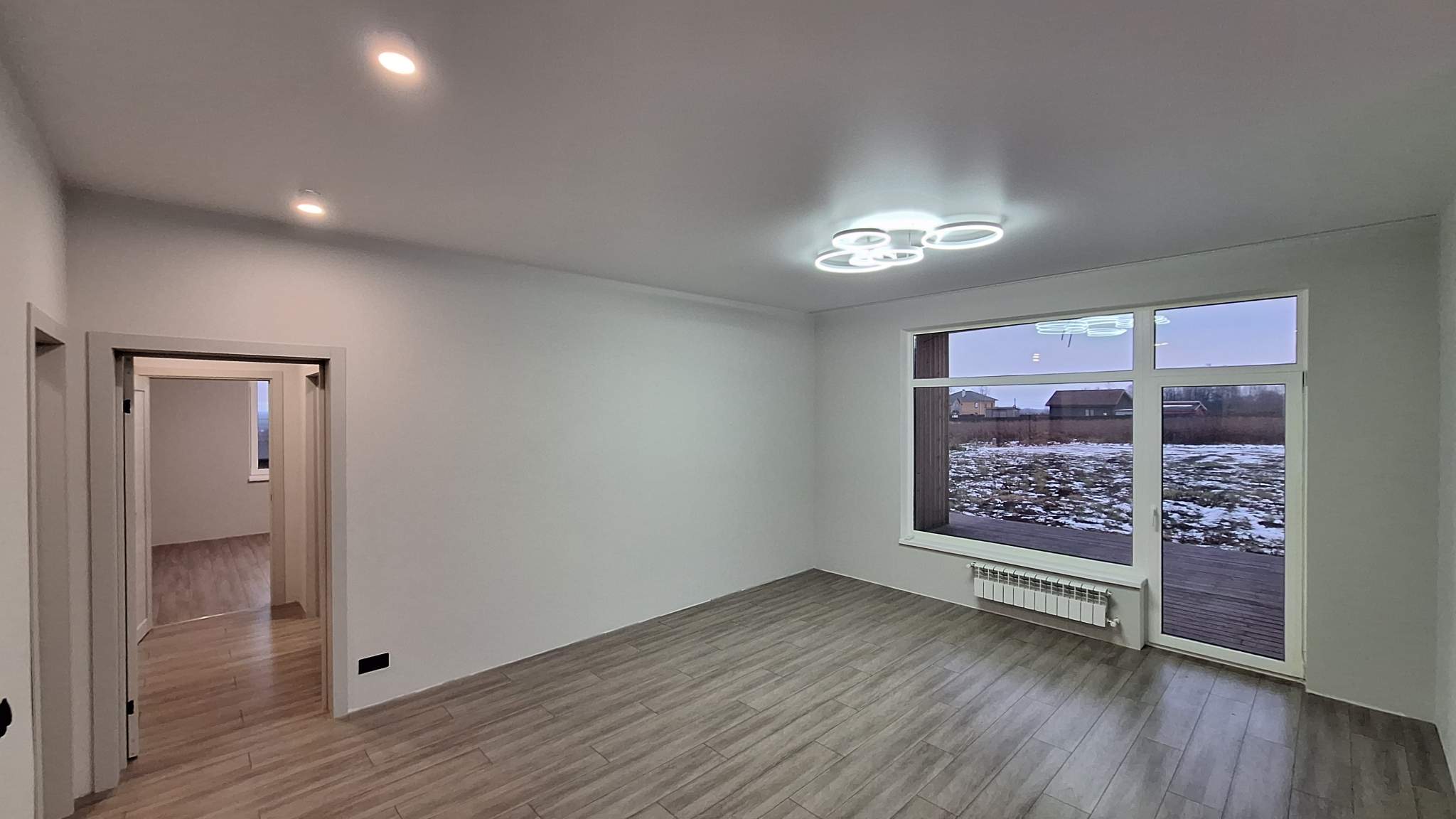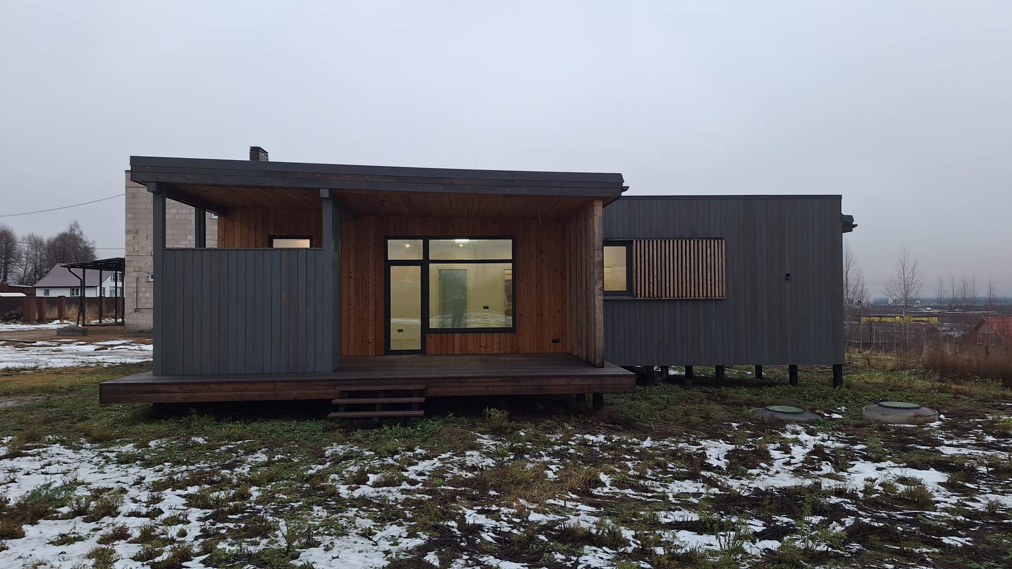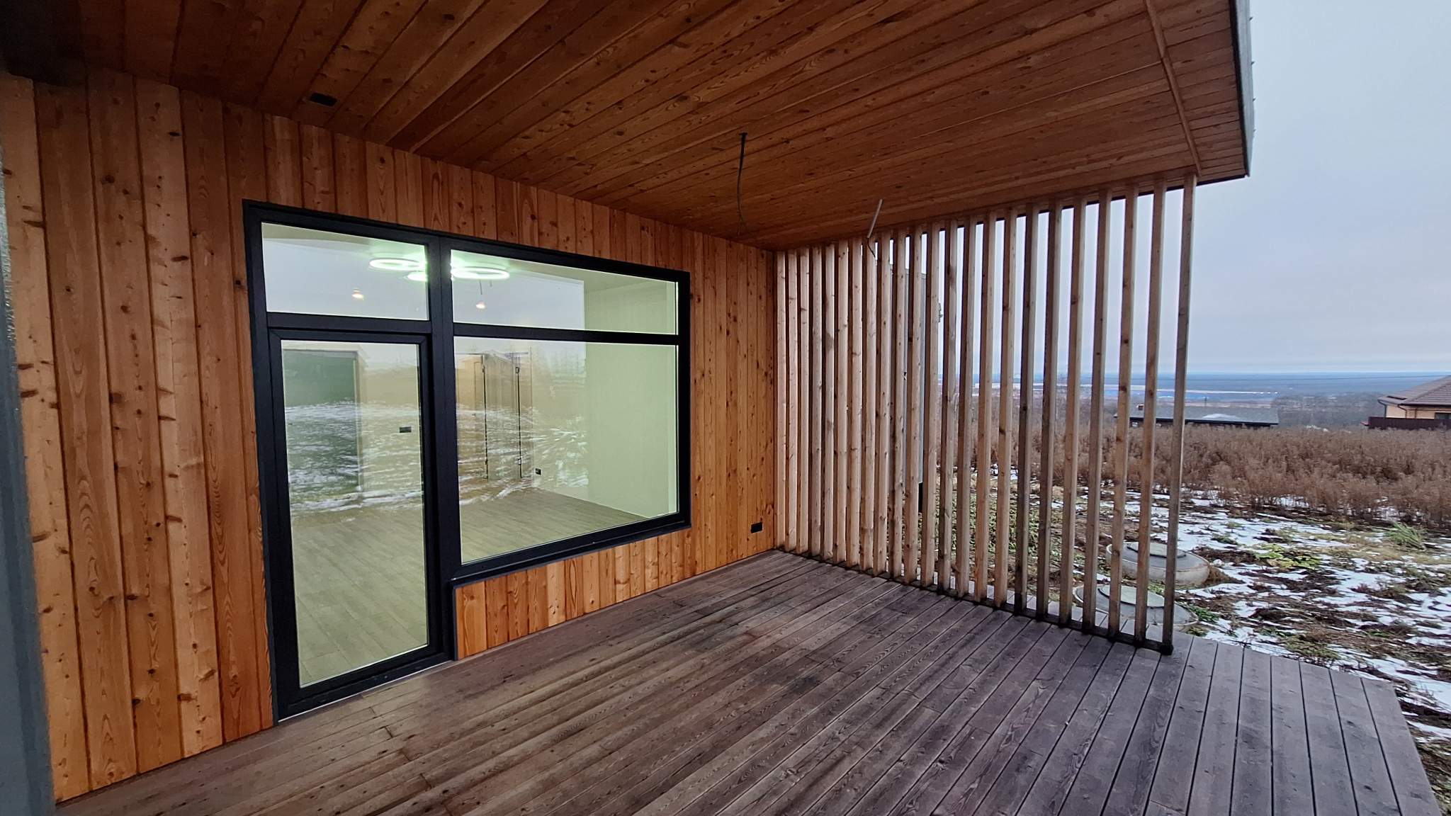 Дом 100 кв.м., построен по финской технологии, с двумя террасами + 50 кв.м. к площади дома, панорамным остеклением, удобная планировка: 3 спальни, просторная гостиная с кухонной зоной, высокие потолки 3 м – много света и воздуха.